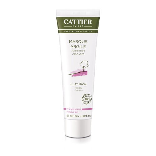 -. Feature : Cattier Pink Clay Mask Sensitive Skin 100ml is an ideal gentle care to soothe and purify the skin, to illuminate the complexion of sensitive and reactive skins. / Enriched in organic shea butter known for its repairing, anti-drying and protective properties, in organic peppermint with refreshing and stimulant properties and in hydrating and soothing aloe vera, it softens and nourishes the epidermis, for an even complexion. / Rich in micro-nutrients from clay, it brings minerals and oligo-elements which are necessary for the beauty and radiance of the skin. / Organic certified.