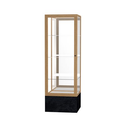 Studio : Waddell Publisher : Waddell Product Description 576MB-GD-BM Base Color: Black Marble, Case Backing: Mirror, Frame Color: Champagne Gold Features: -Monarch Series collection. -Comes with interior lighting for added emphasis. -Made in the USA. Product Type: -Trophy display case. Lighting Available: -Yes. Design: -Floor standing. Display Material: -Glass. Country of Manufacture: -United States. Frame Material: -Metal. Adjustable Shelves: -Yes. Dimensions: Overall Height - Top to Bottom: -72". Overall Width - Side to Side: -24". Overall Depth - Front to Back: -24". Overall Product Weight: -176 lbs. Base/Stand Height - Top to Bottom: -12". 0