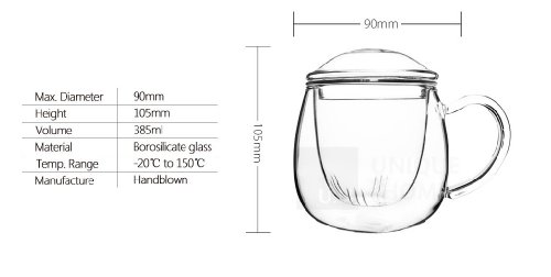 -. Title : UNIHOM - Zeo 385ml 13oz Glass Infuser Tea Mug with Infuser
