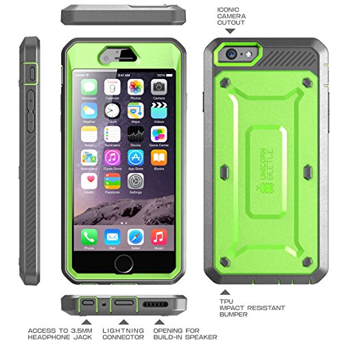 Compatibility: Compatible with Apple iPhone 6 Plus 5.5 inch 2014 Release, allowing full access to touchscreen, camera, buttons, and ports. NOT COMPATIBLE with iPhone 6 4.7 inch or any other iPhone models. Materials: High grade polycarbonate + thermoplastic polyurethane for shock absorption. Front cover with built-in screen protector prevents scratches without compromising sensitivity. Design: Designed with both protection and looks in mind, SUPCASE Unicorn Beetle PRO Series Full-body Hybrid Case provides shock absorption and scratch prevention while maintaining a sporty profile. - Advanced front cover design for easy installation - Built-in screen protector without compromising sensitivity - Advanced dual-layer (PC + TPU) design provides great impact and shock resistance and prevents accidental drop, bump, and shock - Belt Clip Holster - Port cover keeps out debris and dust - Easy access to all features (buttons, camera, speaker, and ports) - Sporty profile and multiple color options What's in the package? 1x SUPCASE Unicorn Beetle PRO Case for iPhone 6 Plus 5.5 inch