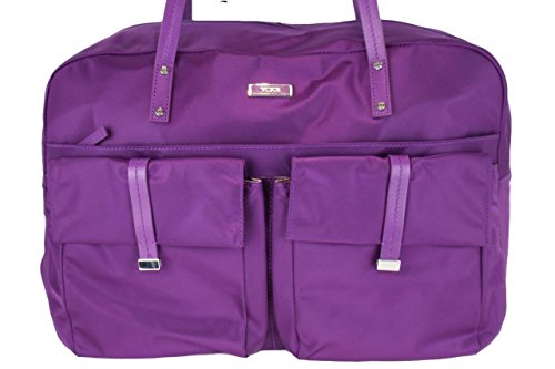 -. Brand : Tumi -. Color : Purple -. Department : womens -. EAN : 0742315240435 -. Feature : Dual top handles / Zip-around closure / Exterior features 2 front magnetic flap pockets, front zip pocket / Interior features wall zip pocket and slip pocket / Approx. 11.5" H x 17" W x 6" D -. Model : 0481993 -. PackageQuantity : 1 -. ProductGroup : Apparel -. ProductTypeName : LUGGAGE -. Title : Tumi Purple Munich Tote Bag Purse Travel Luggage Carry -. UPC : 742315240435 TUMI BOARDING TOTE PURPLE LUGGAGE TRAVEL CARRY ON