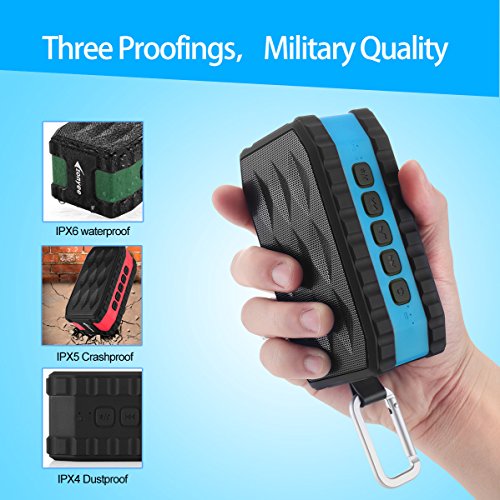 【Great for Outdoors & Shower】IPX6 waterproof, IPX5 crashproof and IPX4 Dustproof, due to unibody frame shell, packaged buttons with sealing interface, and the enclosed low-frequency radiators.