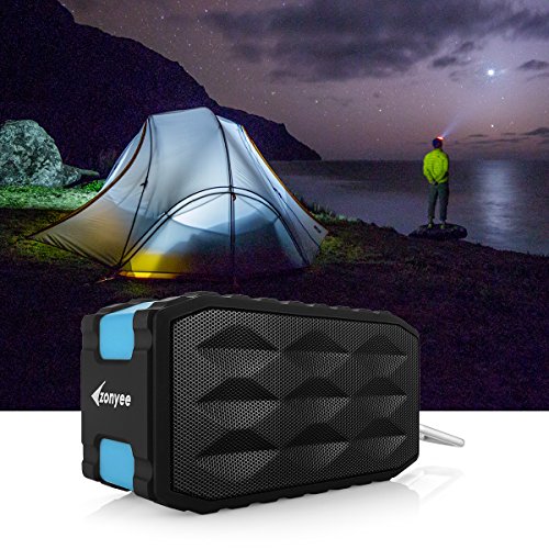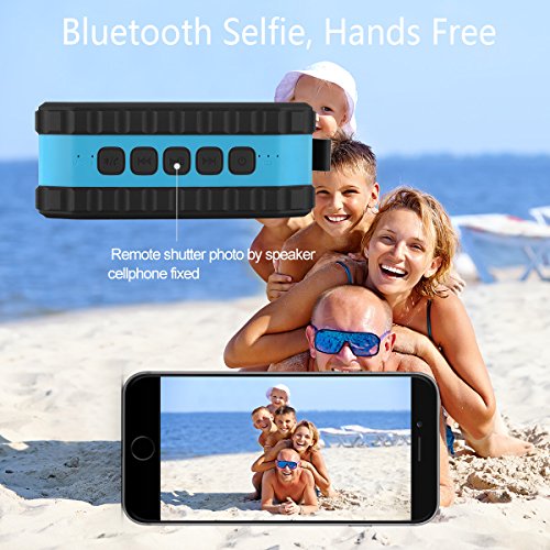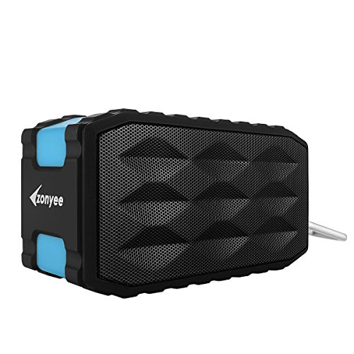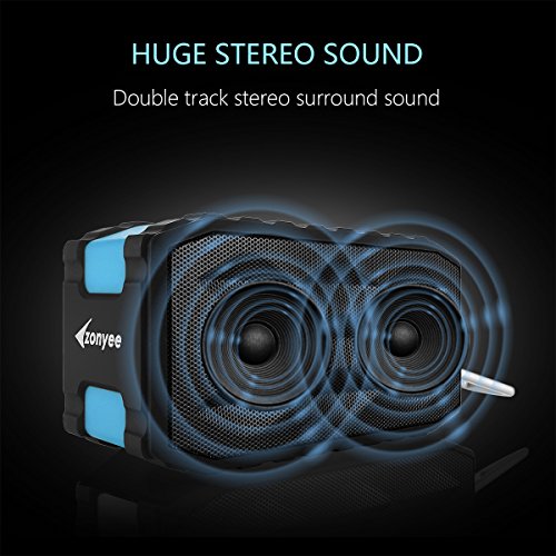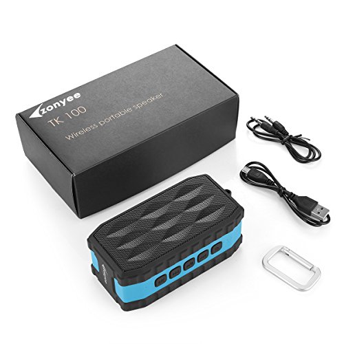 Zonyee NFC Wireless Splashproof Bluetooth Shower Speakers with 8W Drivers, Mountaineering Buckle, Remote shutter photograph and TF card; Hands Free Calls and Ultra Portable - Blue