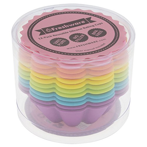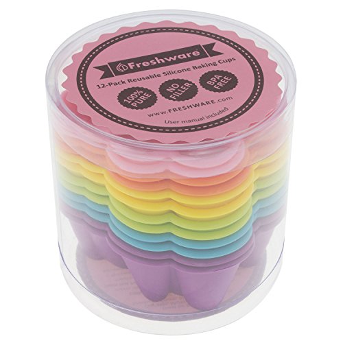 -. Title : Freshware CB-305SC 12-Pack Silicone Flower Reusable Cupcake and Muffin Baking Cup