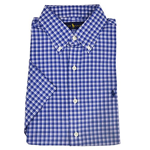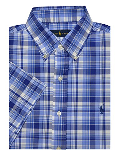 Polo Ralph Lauren Men's Short Sleeve Poplin Sport Shirt, Blue Plaid, S