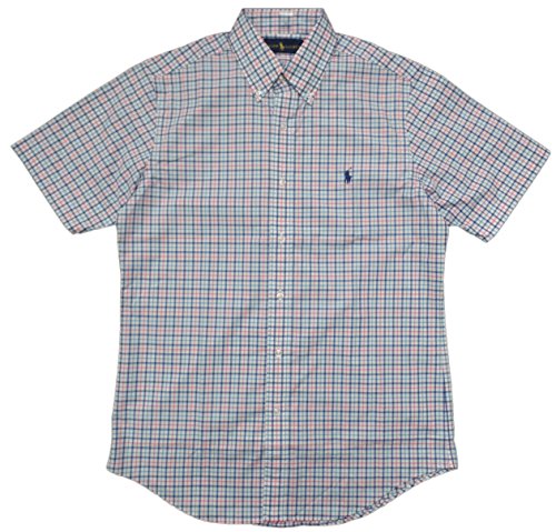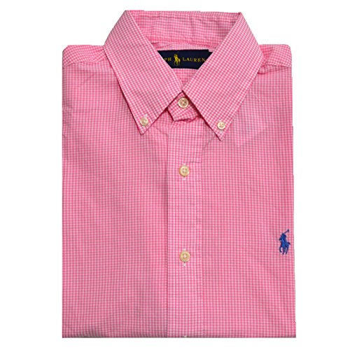 Ralph Lauren Mens Casual Button Down Classic Fit Short Sleve Woven Shirt (Pink Gingham, M)