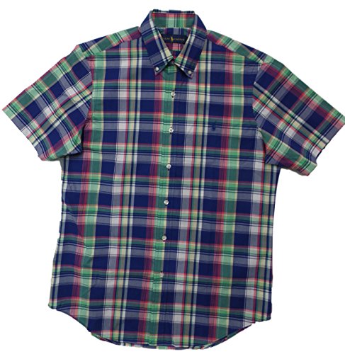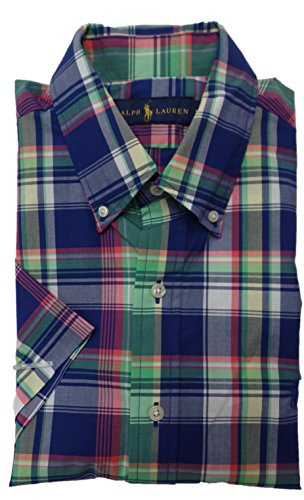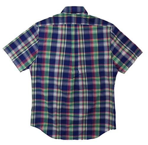 Ralph Lauren Men Short Sleeve Checkered Button-Down Poplin Shirt (S, Royal/Green Multi)