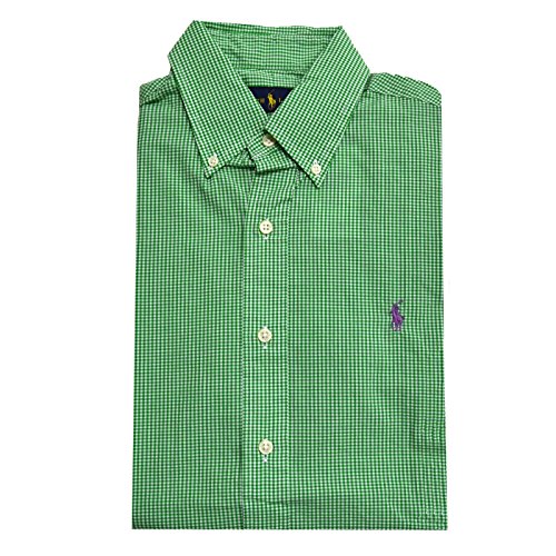 Ralph Lauren Mens Casual Button Down Classic Fit Woven Shirt (Green Gingham, Small)