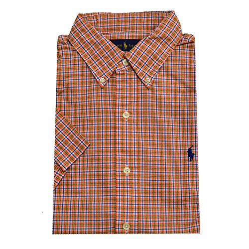 Ralph Lauren Mens Casual Button Down Classic Fit Woven Shirt (Orange Plaid, Small)