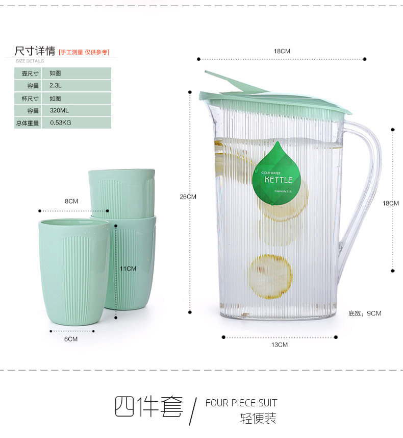 欧式冷水壶套装耐高温家用塑料加厚凉杯果汁杯防爆凉水壶
