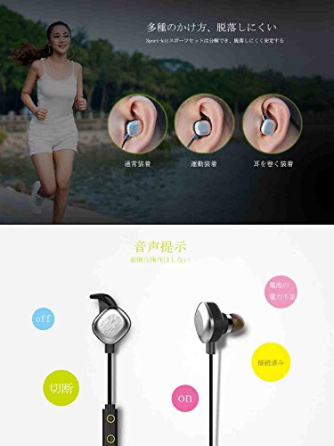 -. Feature : 最新のBluetooth 4.1バージョンを用いて、より簡単、速くスマホ、タブレットなどBluetooth対応のミュージックデバイスと接続できます。 / 人間工学に基いた耳掛け型のデザインは、耳の上部にフィットする柔らかなフックを装着し、イヤホンを耳にしっかりと固定できます。 / イヤホンの背中部分にマグネットを内蔵しているため、使用しない時はマグネットでくっつけておき、首にかけておけることができます。収納がとても便利です。 / 最新のIPX7防水・防滴機能搭載で、強い雨の中のジョギングやサイクリング、激しい運動による汗にもイヤフォンを守ります。ミルク、ビール、コーヒーなどの液体に有効に防ぎます。 / マルチファンクションボタンにより電話応答、電話終了、音楽再生/停止、曲送り/戻り等の操作ができますので、通勤・通学で使いやすいです。