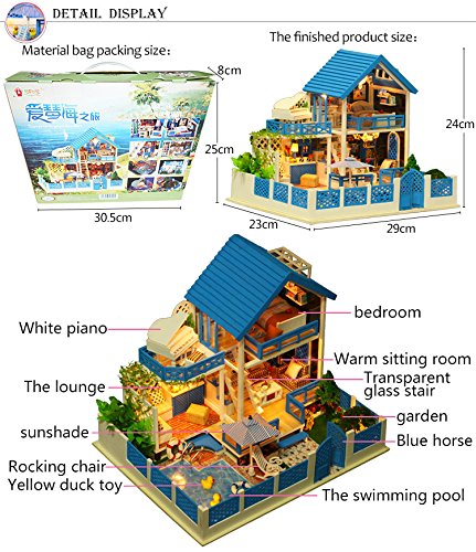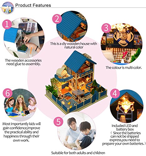 -. Binding : Toy -. Brand : Ploy -. Feature : Ploy is a Registered Brand most poplar in Europe and North America. It's known for dedicated DIY House Kit and DIY Dollhouse. Over 300,000 customers enjoyed the great experience of building their own houses designed by POLY / This beautifully designed dollhouse provides inspiration for your children to role play and imagination. The House comes with Real LED Decoration Lights which make the house really cozy. When you assemble it with your children, it also develops imaginative thinking and storytelling skills / The manual comes with the Dollhouse DIY Kit clearly illustrate how to assemble the house with no hassle. You can easily assemble all the pieces and furniture accessories step by step in accordance with the image guidelines. / The DollHouse Kit includes more than 50 pieces of ORGANIC Woods which are 100% safe for children. The kits come with small pieces, so it is not recommended to children under 6 -. IsAdultProduct : 0 -. Label : ZW -. Manufacturer : ZW -. ProductGroup : Toy -. ProductTypeName : TOYS_AND_GAMES -. Publisher : ZW -. Studio : ZW -. Title : Ploy miniature handmade wooden dollhouses diy kit Doll Cottage with Furniture + dust proof glasses music decorations creative assembling toys-birthday christmas gift for children girlfriend