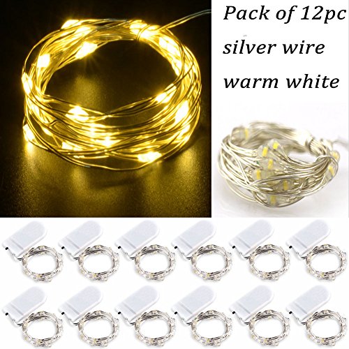 LRCXL Pack of 12 LED Battery Operated Lights 20 Micro Starry LEDs on Silver Wire,2 x CR2032 Batteries Included,6.5 Ft (2m) for DIY Wedding Centerpiece or Table Decorations (Warm White)