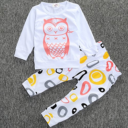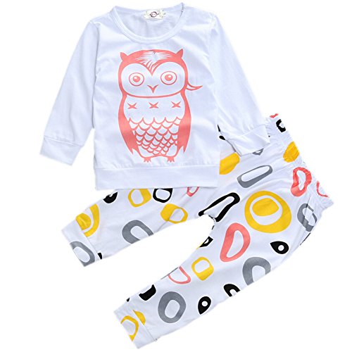 -. Feature : Material:Cotton Blended. Soft and comfortable feeling. / Cute OWL P.R.Int design, make you baby girls looks cool and cute. / Long sleeve and long leggings, keep your baby warm, very suitable for SP.R.Ing, Autumn, Winter / Size:70/80/90/100,different 4 size,pls choose a size after check the size chart below.Unisex babys baby shower gift apparel / It's a perfect birthday and Christmas gift for baby boy or girl