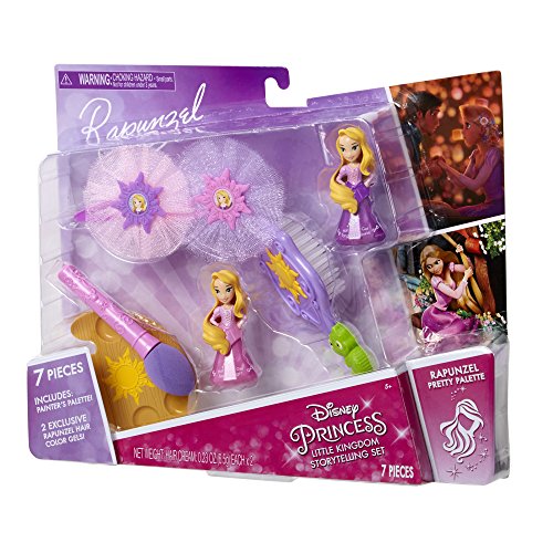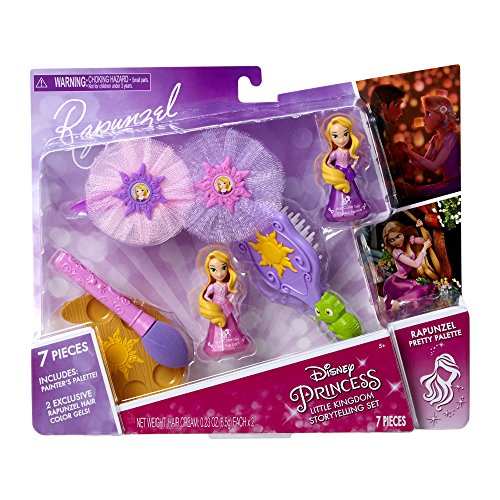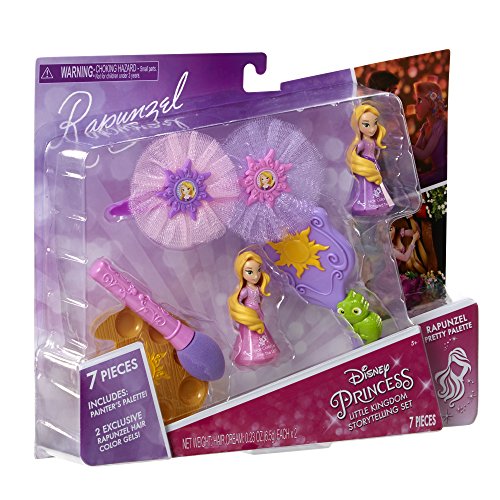 New innovation in makeup play. Create cool hair streaks with Rapunzels Pretty Palette! Choose your favorite Rapunzel color, pour it onto her painters palette, create fun streaks with the painters brush, then add a beautiful hair clip to complete the look!'.Feature
