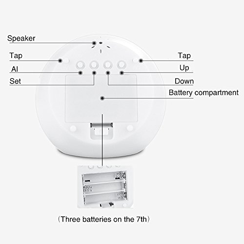 Tap - Pause Button, pressing this button to pause the alarm Flush-mounted switch 12/24 hour mode - - up mode, turn off the alarm function Down - Turn on temperature mode, drop down, activate the alarm function Set - Switch the type you need to adjust Al - Change the clock and alarm mode