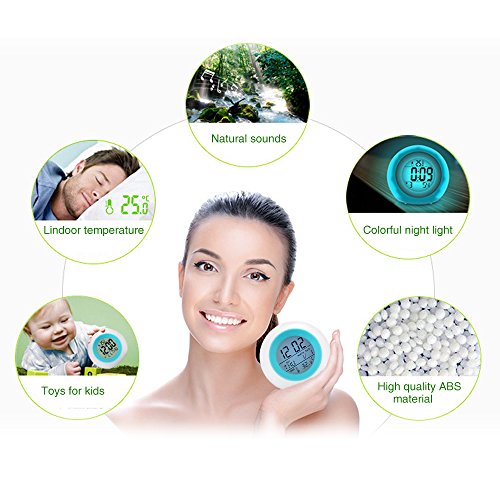 calendar temperature indicator alarm clock and snooze mode, timer; Natural Sound Demonstration function; Enjoy the timing function; Night Light changes, use the product temperature: 0 ℃ ~ 70 ℃. storage temperature of product in cm: 10 ℃ ~ 90 ℃;