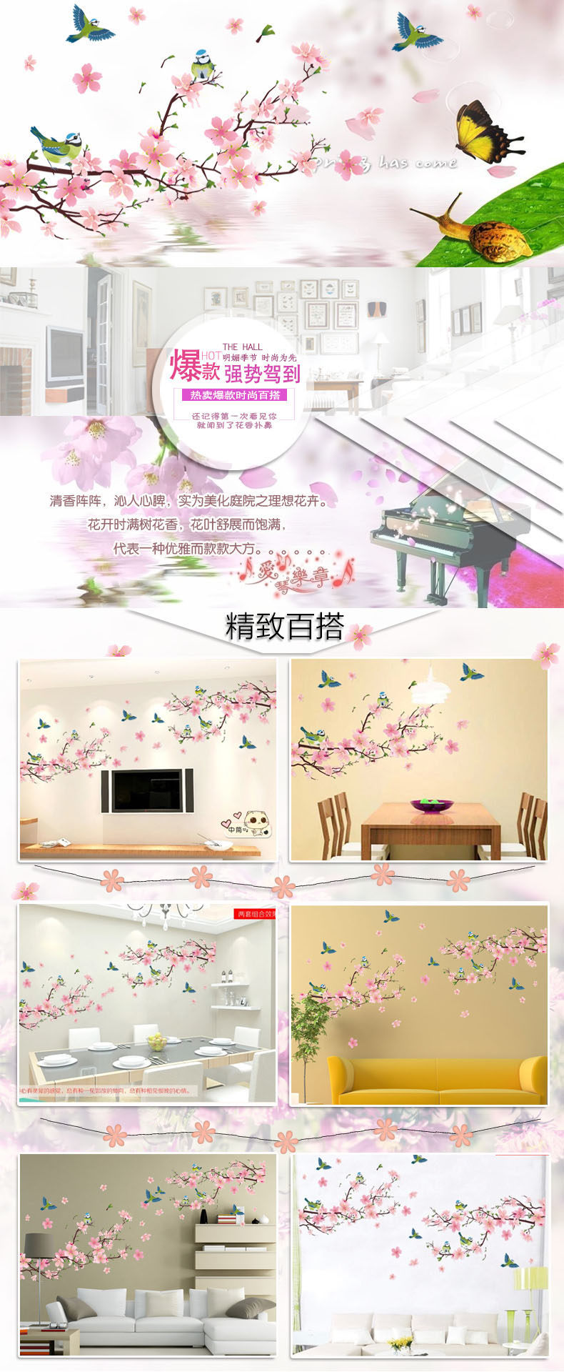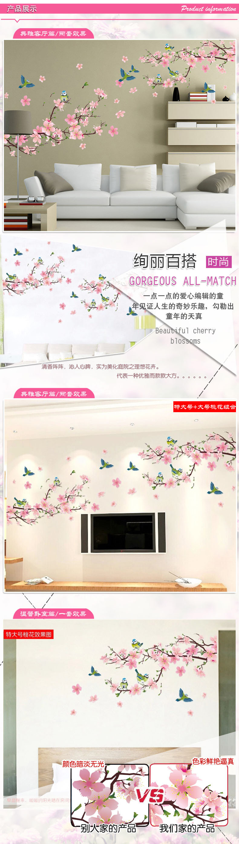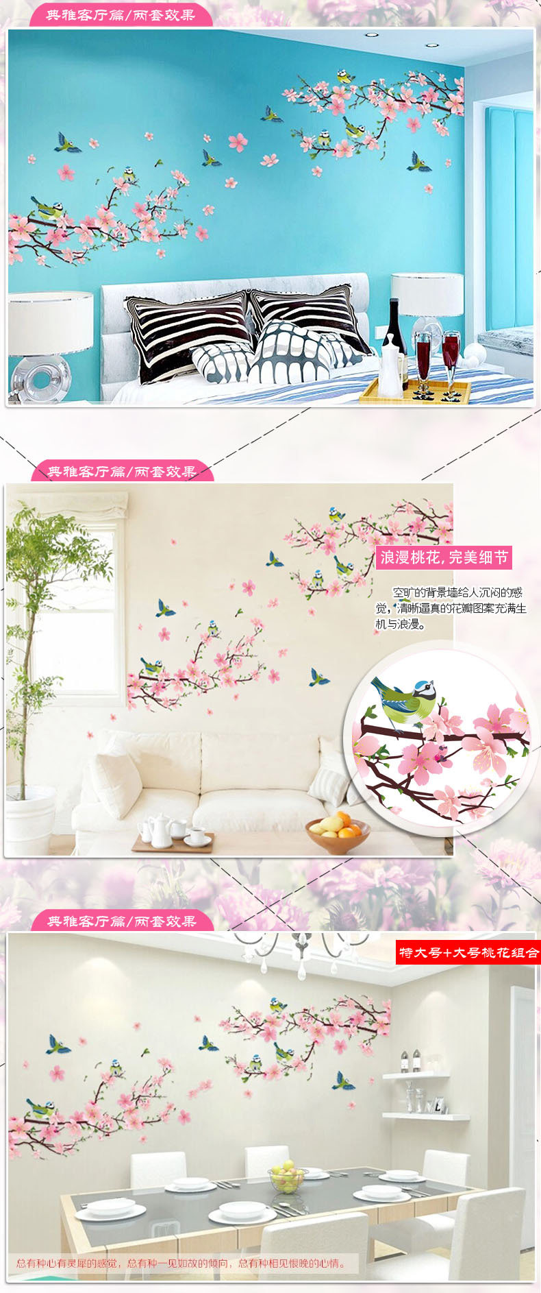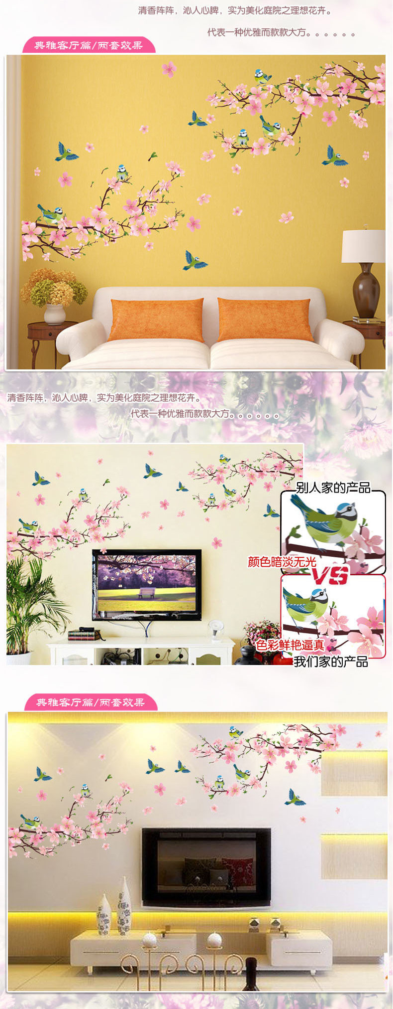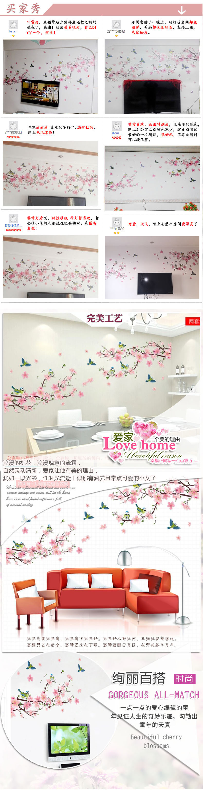 中国风墙贴 卧室客厅墙贴纸电视背景贴画家居装饰 防水可移除贴纸