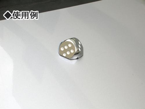 サイコロがボンネットに埋まっているように見えるウォッシャーノズルのカバーです。両面テープで貼り付けます。2個セット。