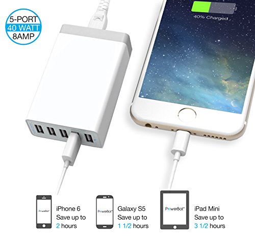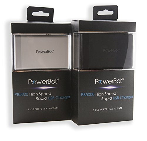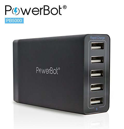 PowerBot® PB5000 40W 8-Amp 5-Port Rapid Charger USB Wall/Desktop/Travel Smart Charging Station w/ Ultra High-Performance Intelligent Smart IC Technology for iPhone, iPad, Android, Samsung, Nokia, HTC, LG, Nexus, Motorola, Tablets, Camera, Smartphones, Pow