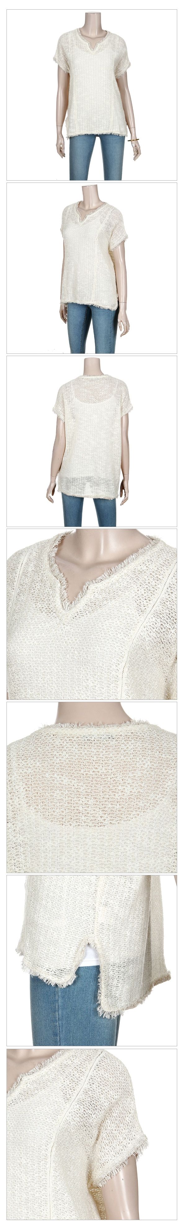 은은한 반짝임의 소재에 프린지 배색 디테일의 언발런스 니트입니다.