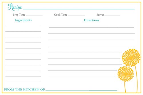 Recipe Cards, Double Sided, 4 x 6, Bridal Shower, Yellow, Aqua, Dandelions, Flowers, Wedding, Set of 24 Printed Cards,, Modern Floral Blue