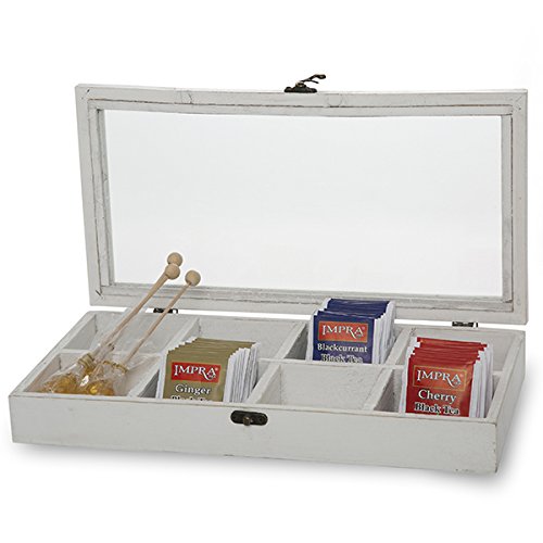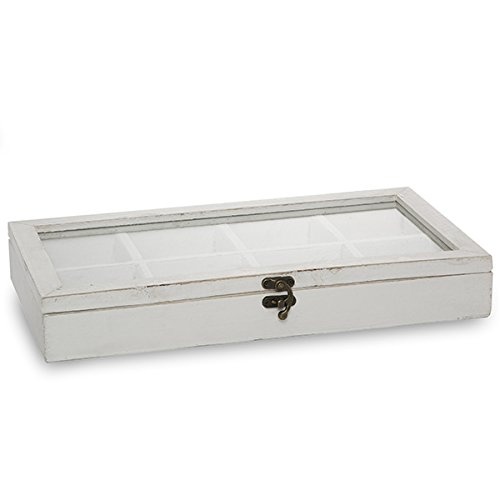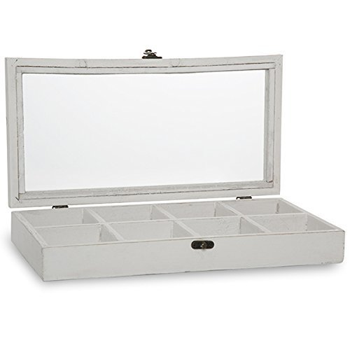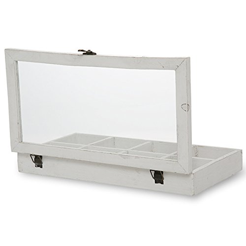The Lucky Clover Trading Company Rectangular Wood Display Case with Glass Lid, Worn White