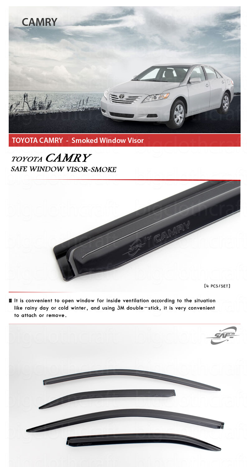 Smoked Side Window Vent Visors Deflectors Rain Guards for Toyota Camry 2007 2011