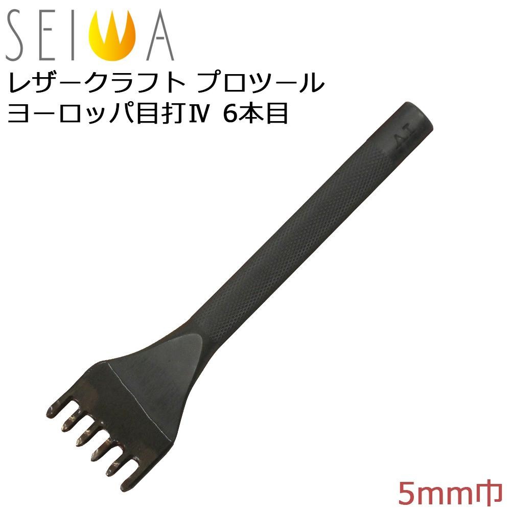 刃先は菱目打のように先端が「点」ではなく、角と角をつなぐ「線」形状になっています。そのため、革の厚みで穴のサイズが変わらず、線状の縫い穴があきます。6本目は長い直線をあけるのに適しています。 |