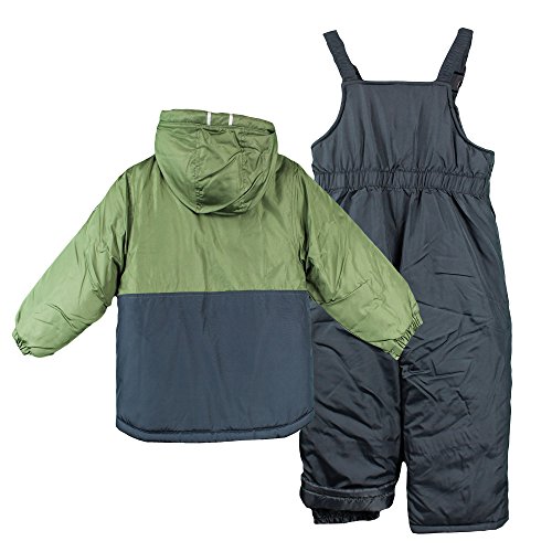 Snowsuit with snow bib and color blocked puffer jacket