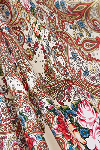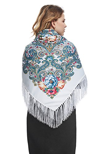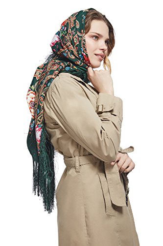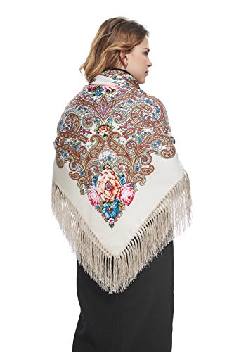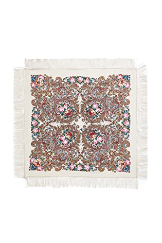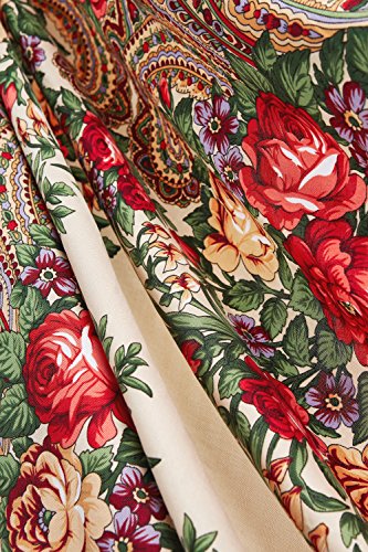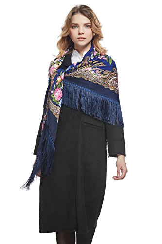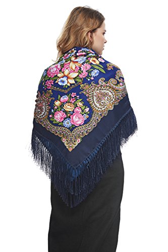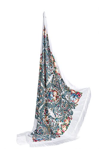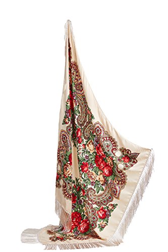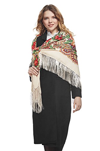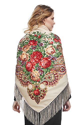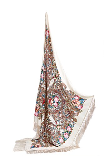 Binding : Apparel Product Description This fine wrap echoes famous Russian, Ukrainian and Polish floral shawls and especially Pavlovsky Posad scarves that are widely known as classic symbols of Russian handicraft and finest elegance. Back in the 18th century Russian shawls served both as a fashion women's accessory and as a decoration for interiors. Now embroidered scarfs represent a stunning mix of old traditions and modern style. Highlights ? The oversized square scarf with vibrant floral ornaments and long silk tassels all over the perimeter. ? The shawl features themes found in nature. ? The ethnic shawl can be worn around the neck, across the shoulders and over the head as a classic Russian head wrap (platok). ? This multifunctional scarf will add a touch of bohemian elegance to your look and keep you warm during chilly days. Materials and care tips ? The closely woven cotton blend fabric boasts the lustre look and soft feel of silk. Durable material with no stretch has excellet drape. It's hypoallergenic and won't irritate your skin. ? To save the vibrant colors of the wrap hand wash it in cold water using mild detergent. ? The shawl is wrinkle resistant, so it doesn't need everyday ironing. Warranty We are sure about high quality of our products. That's why we offer 30 day money back guarantee on all scarfs. If you don't like the shawl for any reason, return it within 30 days and get a full refund. 0