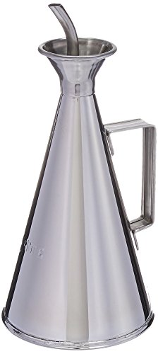 -. Feature : 1/2 liter capacity (16.9 ounces). / Drip-free pouring. / Height is 7 1/2 inches and width at the base is 4 1/4 inches. / Constructed from 18/10 stainless steel with mirror finish. / Made in Spain.