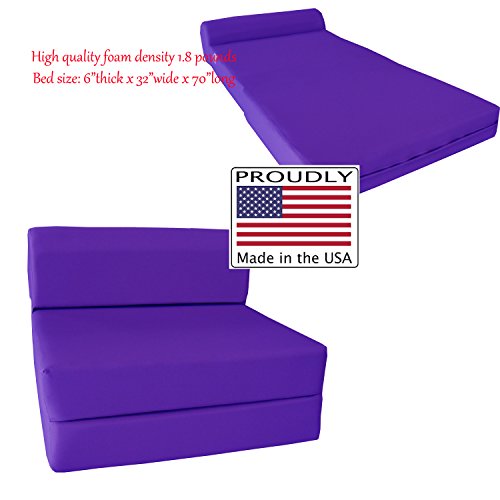 -. Title : Purple Sleeper Chair Folding Foam Bed Sized 6" Thick X 32" Wide X 70" Long, Studio Guest Foldable Chair Beds, Foam Sofa, Couch, High Density Foam 1.8 Pounds.