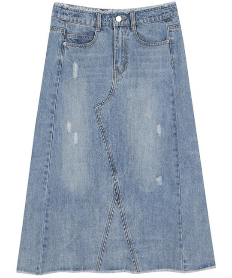 라이트 블루 색상의 자연스러운 프린지 장식이 돋보이는 데님 스커트 입니다. 과하지 않은 헤짐 패턴과 뒷 트임으로 트렌디하면서도 편안한 아이템 입니다.