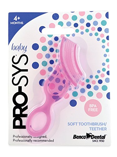 -. Brand : PRO-SYS -. Feature : Unique, H-shaped toothbrush head with six soft bristles are designed to gently massage tender gums and clean all sides of upper and lower teeth at once / Great as a teething toy, chill in the freezer to give your baby cooling relief / Dishwasher Safe / Made of 100% Silcone. BPA, lead and phthalate free. / Recommended for ages 4+ months -. Label : PRO-SYS -. Manufacturer : PRO-SYS -. PackageQuantity : 2 -. ProductGroup : Health and Beauty -. ProductTypeName : PERSONAL_CARE_APPLIANCE -. Publisher : PRO-SYS -. Studio : PRO-SYS -. Title : PRO-SYS Baby - Soft Toothbrush/Teether 2 count