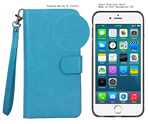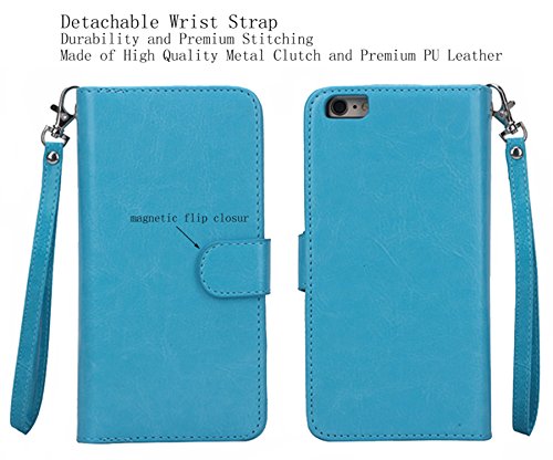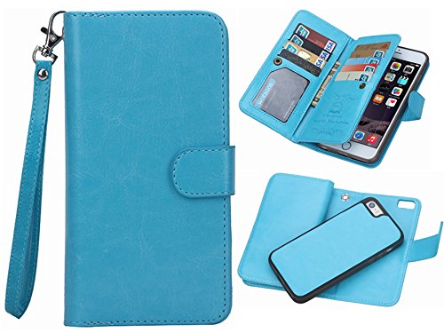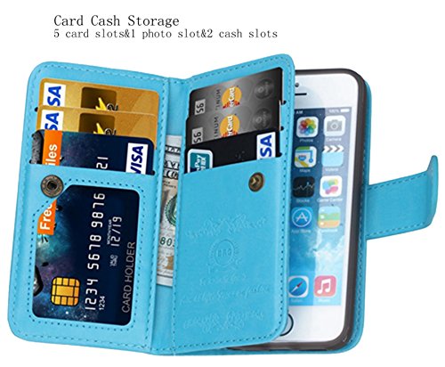 iphone 5/5S/SE 2 in 1 Wallet Case,Hynice Folio Flip PU Leather Case Magnetic Detachable Slim Back Cover Card Holder Slot Wrist Strap wallet for iphone 5/5S/SE. (blue)