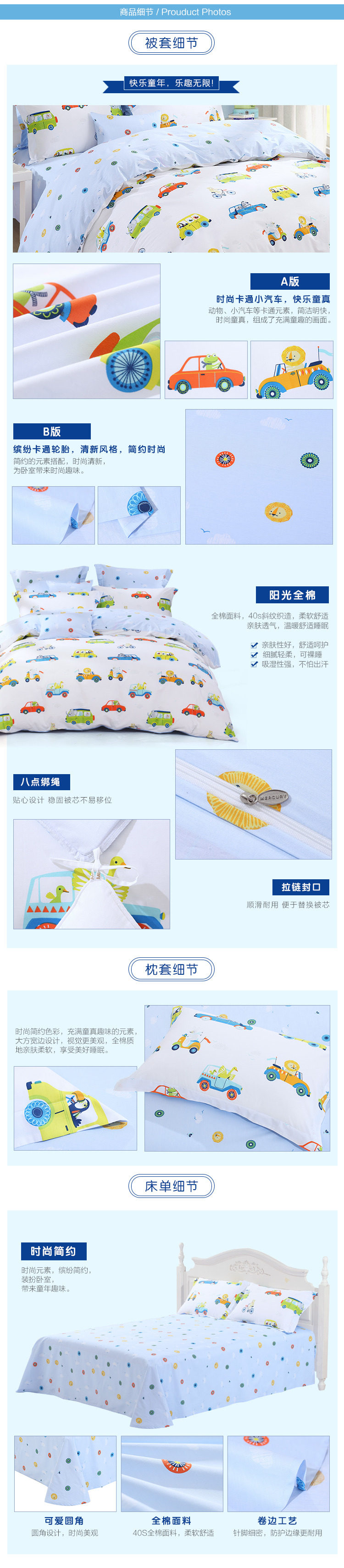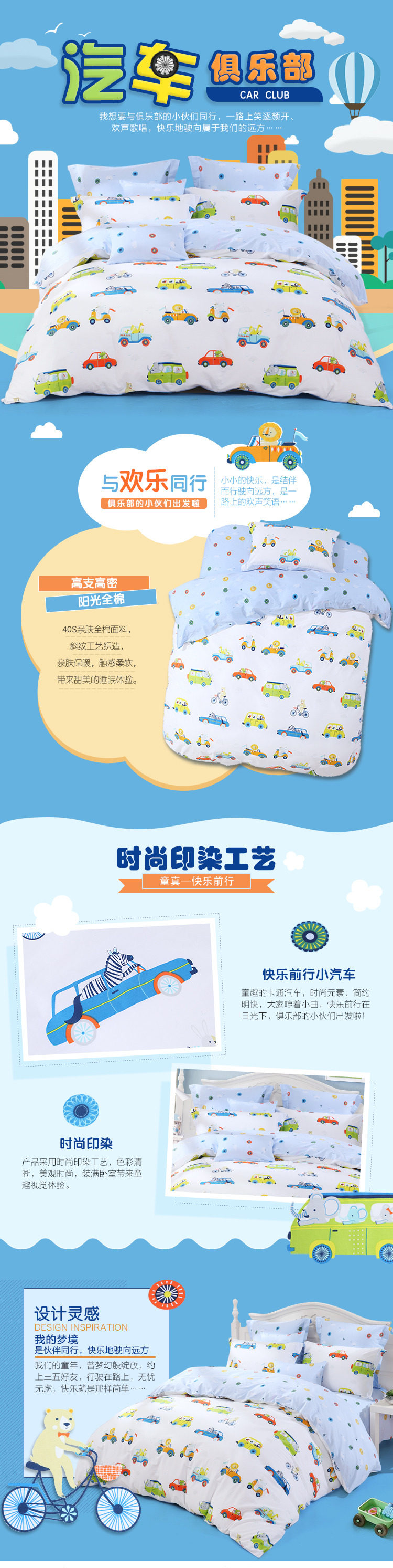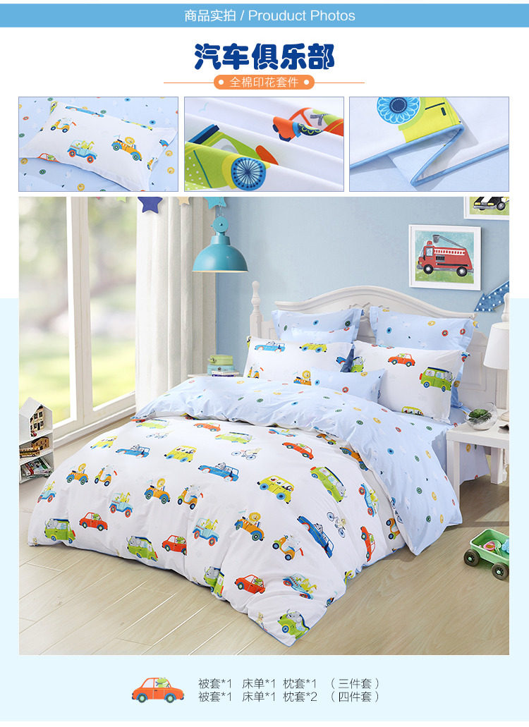 Commodity brand Mercury Product Name Auto Club Item No. 504500 504501 504502 Product specifications 1.2m bed quilt cover: 150 * 210cm bed sheets: 200 * 230cm pillowcases: 48 * 74cm 1.5m bed quilt: 200 * 230cm bed sheets: 240 * 245cm pillowcases: 48 * 74cm 1.8m bed quilt: 220 * 240cm bed sheets: 270 * 245cm pillowcases: 48 * 74cm Quality standards GB 18401 Class B Product weight 1.2m Bed: Product weight: g Product gross weight: g 1.5m Bed: Product Weight: g Gross Weight: g 1.8m Bed: Product Weight: g Gross Weight: g All products are sampling inspection, there is a certain error, specifically to receive the subject Ingredients AB Surface: Cotton Twill Paint Cloth Product details three sets: quilt × 1, bed sheets × 1, pillowcases × 1 four sets: quilt × 1, bed sheets × 1, pillowcases × 2 exquisite packaging * 1
