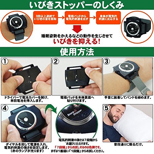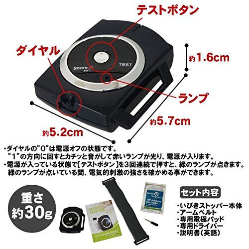 Eliminate the snoring just sleep wrapped around the wrist! Support a comfortable sleep! Size: about) 5.7 × 5.2 × 1.6cm weight :( approximately) 30 g, Power: AAA batteries (1.5V AAA) × 1 one output intensity: 180Myuei, output method: 0.2 Hz Fixed Output Waveform: Constant Frequency square wave eliminate the snoring just sleep wrapped in system output iimono117 snore stopper 2