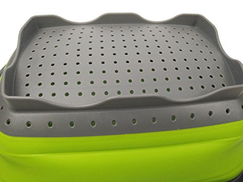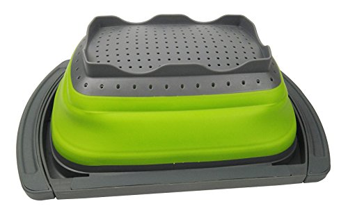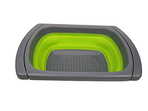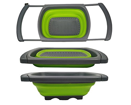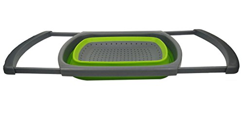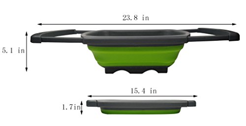 HapWay Silicone Collapsible Colander, Kitchen Food Folding Strainer Drainer Over the Sink with Extendable Handles for Draining fruit, Vegetables, Potatoes, etc (Green)