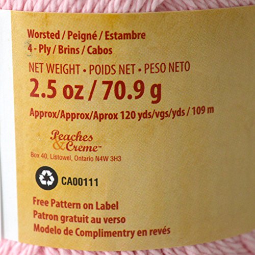 Peaches & Creme (Cream) Cotton Yarn Pastel Pink 2.5 oz. Color 11421