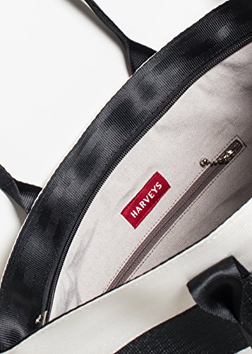 -. Brand : Harvey's -. Color : black -. Department : womens -. Feature : 12.5" (L) X 14.5" (H) X 3.75" (W) with 10" handle drop / Detachable strap extends from 25" - 41" / Recycled plastic bottle interior lining / Made in USA / Vegan -. ProductGroup : Shoes -. ProductTypeName : HANDBAG -. Size : Large -. Title : Harveys Streamline Tote Horizontally stitched seatbelt fully lined with inner zip pocket and extra slip pockets for storage. Features top carry handles, cross body strap, and zip top.