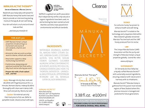 Manuka Secrets Cleanse Naturally Dissolves Makeup While Replenishing Face, Neck, Decollete with Powerful UMF 18+ Manuka Honey That Works Hard & Deep to Nourish & Soothe. Skin Retains a Nurtured and Toned Look and Feel. Certified Natural From New Zealand (100ml)