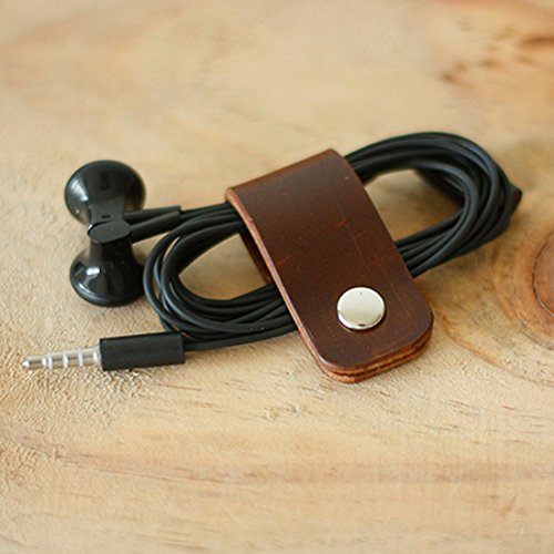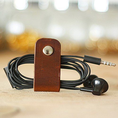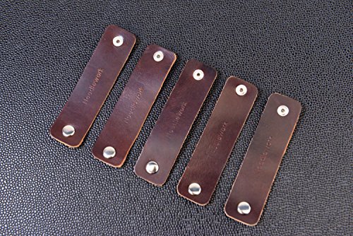 Beschan Handmade Genuine Leather Cable Organizer Cord Keepers Set of 5 Wrap Winder for Headphone Earphone Gift