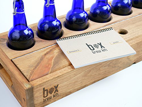 Studio : Box Brew Kits Publisher : Box Brew Kits Product Description Long and sleek, this handcrafted Beer Making Home Brewing Kit is perfect for craft beer lovers with an eye for style. The base measures 44" long and 9" wide. This one-gallon model includes 8 reusable cobalt blue flip-top bottles to bottle your beer, no caps required. From start to finish, the brewing process takes as little as two weeks and will create about eight tasty 16 oz. beers for you and your friends to enjoy. Get brewing today! Parts included: - Box Brew Kits 1-gallon base, handcrafted from rustic pine - 1 1-gallon glass fermenter - 8 reusable cobalt blue flip-top bottles (no need for capping) - Triple-scale hydrometer with glass test jar (and stand), for measuring alcohol content - Auto-siphon, for quickly and easily transferring your beer between vessels - 2" Stainless Steel Funnel - Drilled rubber stopper - 3-piece plastic airlock - Laboratory Thermometer - Miscellaneous glass jar with cork (for priming sugar, sanitizer, etc.) - 4' length of 3/8" tubing, for siphoning your beer - Recipe Book with over 25 recipes to choose from - Brewers' Log - Full set of instructions Recipe packs are NOT included and are available for separate purchase. 0