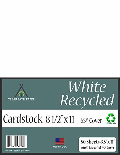 Recycled White Cardstock - 8.5 x 11 inch - 65Lb Cover - 50 Sheets