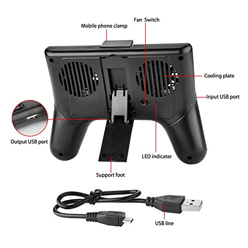 -. Title : YAKER Cell Phone Cooling Fan Pad, 4 In 1 Portable Power Bank Supply Charger, Cellphone Charging Stand Holder, USB Gamepad/Game handle Grip Clutch,Smartphone Radiator Fan for iPhone, Samsung, Android