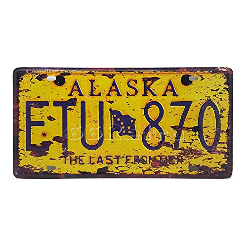 66Retro Alaska ETU 870, The Last Frontier, Embossed Vintage Tin Sign, Retro Auto License Plate, 30cm x 15cm