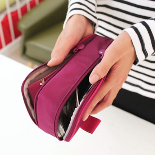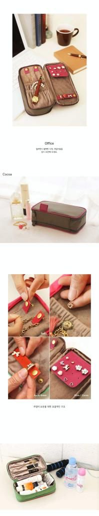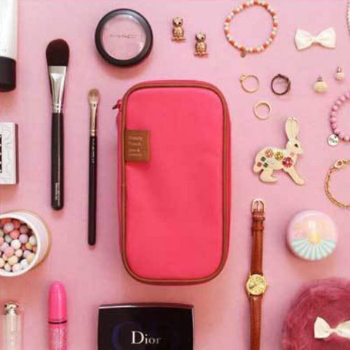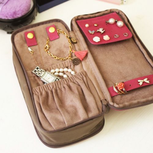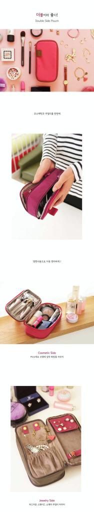 • Double sided pouch - One side is used to organize cosmetics, the other side to store jewellery