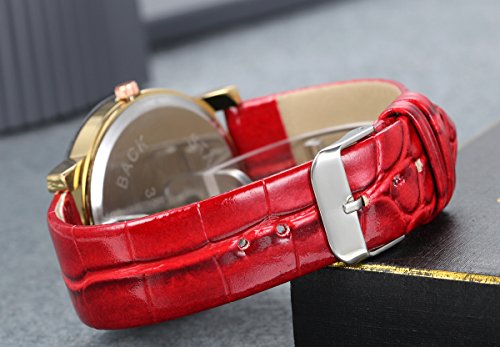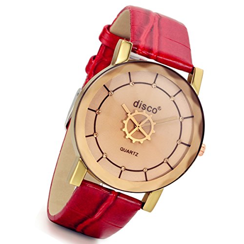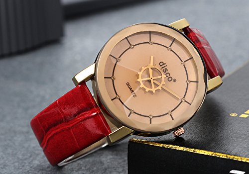 -. Title : Lancardo Rhinestone-Studded Dial Gear Second Hand Mirror Red Leather Band Watches for Girls Ladies