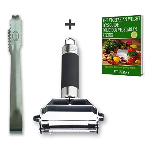 - 100% Different Professional Stainless Steel Vegetable and Julienne Peeler with serving tongs to creatively shred and cut your vegetables